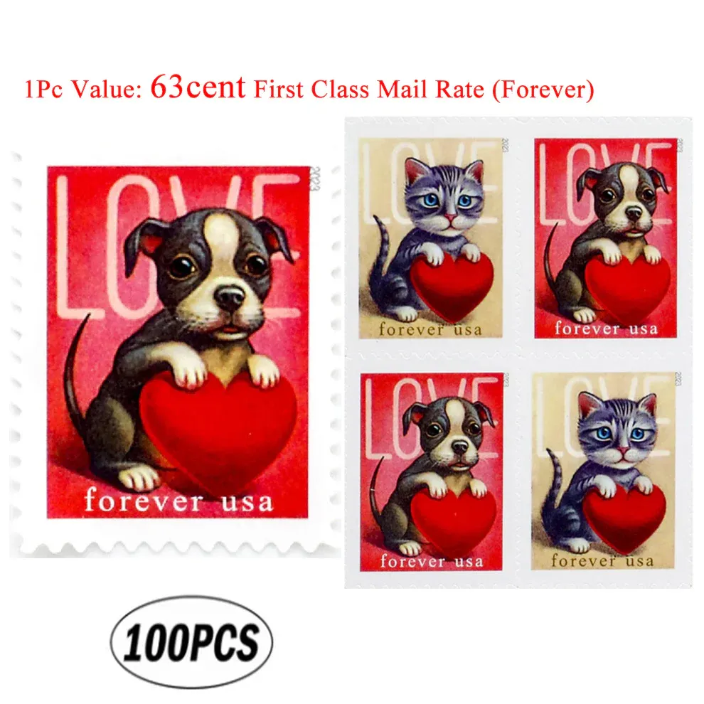 100Pcs 2023 First-Class Forever Stamps - Love: Kitten & Puppy
